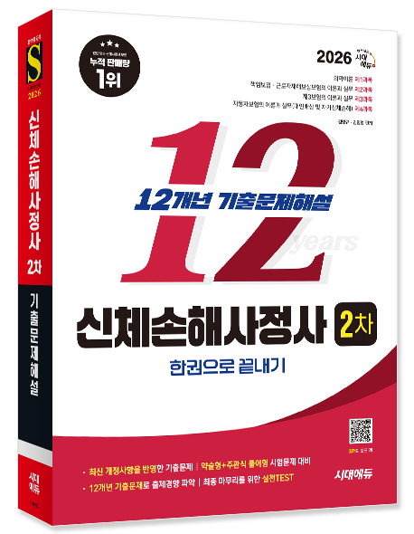 2026 시대에듀 신체손해사정사 2차 기출문제해설 한권으로 끝내기 도서는 2차 시험을 준비할 때 어려움을 겪는 약술형+주관식 풀이형 문제를 연습할 수 있도록 구성한 기출문제집입니다. 약술형+주관식 풀이형 문제의 답안 구성은 개념 순서를 나열하여 일목요연하게 서술하고 문제 질문의 핵심 내용을 기입해야 합니다. 2026 시대에듀 신체손해사정사 2차 기출문제해설 한권으로 끝내기 도서는 이러한 답안 작성을 해결할 수 있도록 구성하였습니다. 2026 시대에듀 신체손해사정사 2차 기출문제해설 한권으로 끝내기 도서를 통해 합격의 기쁨을 누리시길 바랍니다.
