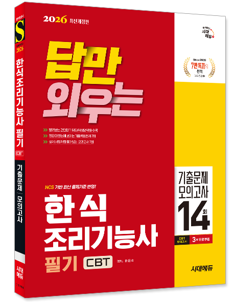 2026 시대에듀 답만 외우는 한식조리기능사 필기 CBT기출문제+모의고사 14회 - 시대에듀