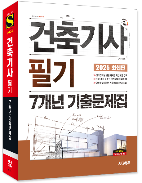 건축기사 필기시험은 과년도 기출문제의 반복 출제비율이 높지만 최근 8년간 평균 합격률이 30%대에 불과한 어려운 시험입니다. 본서는 수험생들이 보다 쉽고 완벽하게 자격증을 취득할 수 있도록 최근 7년간 기출(복원)문제를 통해 명확히 출제 포인트를 파악하고, 기출문제를 통해 본인의 취약점을 파악하는 등 보다 전략적으로 시험을 준비할 수 있도록 체계적으로 구성한 도서입니다. 시대에듀의 <2026 시대에듀 건축기사 필기 7개년 기출문제집>과 함께 합격의 기쁨을 누려보세요!