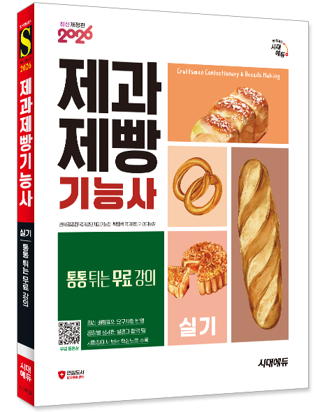 “2026 시대에듀 제과제빵기능사 실기”는 한국산업인력공단 최신 실기과제의 요구사항을 완벽 반영하였습니다. 100% 합격률을 자랑하는 통통 튀는 미녀강사 김경진 쌤의 유쾌한 무료 동영상 강의는 물론이며, 학원에서도 알려주지 않는 시험장 Tip까지 수록되어 있습니다.