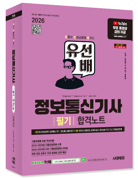 유튜브 선생님에게 배우는 유·선·배, <유선배 정보통신기사 필기 합격노트>와 함께 2026년 정보통신기사 필기 합격의 주인공이 되어 보세요!