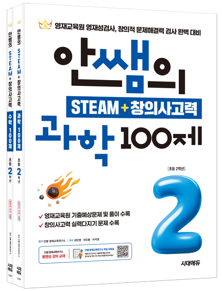 영재성검사,영재교육원,초등학교수학,창의적문제해결력평가,창의탐구력,정보영재,소프트웨어영재,창의사고력,교육청영재교육원,대학부설영재교육원,초등수학창의사고력대회,창의사고력대회,영재,영재학교,과학고,STEAM수학,STEAM,융합인재교육,문제해결력,안재범,안쌤창의사고력수학,안쌤STEAM창의사고력수학100제,시대교육,시대고시,2학년수학,안쌤STEAM창의사고력과학100제,2학년과학,시대에듀