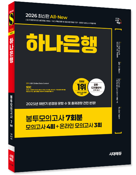 하나은행은 신입행원 채용 과정에서 온라인 필기전형을 실시하고 있다. 이에 시대에듀에서는 수험생들의 필기전형 대비를 위해 다음과 같은 특징을 가진 『2026 최신판 시대에듀 All-New 하나은행 온라인 필기전형 봉투모의고사 7회분』을 출간하였다.