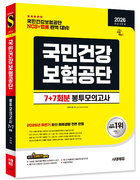국민건강보험공단 합격을 위해 시대에듀에서는 채용을 대비하여 국민건강보험공단 맞춤형 문제로 구성한 『2026 최신판 시대에듀 All-New 국민건강보험공단 NCS+법률 봉투모의고사 7+7회분』을 출간하였다. 상세한 해설로 혼자서도 학습이 가능하도록 하였으며, 온라인 모의고사를 무료로 응시할 수 있는 쿠폰을 발급하여 국민건강보험공단 문제 유형에 대한 연습과 함께 자신의 실력을 점검할 수 있도록 하였다.