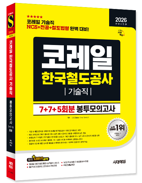 한국철도의 자부심을 넘어 세계 으뜸이 되기 위해 노력하는 코레일 한국철도공사는 2026년 상반기에 기술직 신입사원을 채용할 예정이다. 코레일 한국철도공사의 채용절차는 「입사지원서 접수 → 서류검증 → 필기시험 → 체력심사 및 실기시험 → 면접시험 및 인성검사 → 최종 합격자 발표」 순서로 이루어진다. 필기시험은 직업기초능력평가와 직무수행능력평가, 철도법령으로 진행된다. 그중 직업기초능력평가는 의사소통능력, 수리능력, 문제해결능력 총 3개의 영역을 평가한다. 또한, 직무수행능력평가의 경우 직렬별로 전공 분야가 다르므로 반드시 확정된 채용공고를 확인해야 한다. 필기시험 고득점자 순으로 최종선발 인원의 2배수 이내로 합격자가 결정되므로 고득점을 받기 위해 다양한 유형에 대한 폭넓은 학습과 문제풀이능력을 높이는 등 철저한 준비가 필요하다.