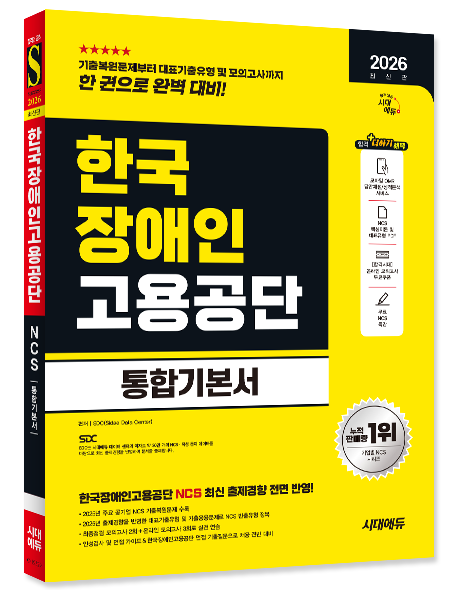 한국장애인고용공단 합격을 위해 시대에듀에서는 채용을 대비하여 한국장애인고용공단 맞춤형 문제로 구성한 『2026 최신판 시대에듀 한국장애인고용공단 통합기본서』를 출간하였다. 상세한 해설로 혼자서도 학습이 가능하도록 하였으며, 온라인 모의고사를 무료로 응시할 수 있는 쿠폰을 제공하여 한국장애인고용공단 문제 유형에 대한 연습과 함께 자신의 실력을 점검할 수 있도록 하였다.