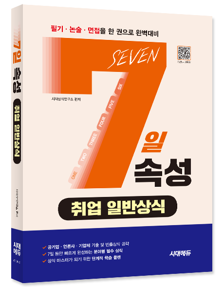 누구나 알고 있는 일반적인 지식을 뜻하던 ‘상식’이 이제는 학습을 필요로 하는 학문의 개념으로 변화하고 있습니다. 개인적 지식의 범주에서 취업 등 사회 조직의 일원이 되기 위한 필수 준비 코스로 자리매김하고 있기 때문인데요. 상식 공부는 신문 등을 꾸준히 읽으면서 준비하는 것이 가장 좋지만, 매일 끝없이 쏟아지는 새로운 지식의 홍수 속에서 무엇을 공부해야 할지 몰라 헤매는 경우가 다반사입니다. 특히 가짜뉴스처럼 확실하지 않은 정보가 무분별하게 유통되는 상황에서 단기간에 정보를 올바르게 이해하고 분석하는 것은 쉽지 않은 일입니다. 이렇듯 상식을 공부하는 데 어려움을 느끼는 분들을 위해 시사상식연구소가 상식 중에서도 시험에 나오는 최신·빈출 핵심개념만 쏙쏙 뽑아 ‘7일 안에’ 끝낼 수 있는 <7일 속성 취업 일반상식>을 준비하였습니다. 이 책이 여러분이 취업의 문을 활짝 여는 데 큰 도움이 되길 기대합니다.