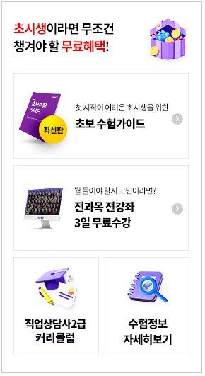 | 2급 | 필기시험 (1차) | 직업심리, 직업상담 및 취업지원, 직업정보, 노동시장, 고용관계법규(Ⅰ) | 객관식 4지 택일형 (총 5과목 100문항) |