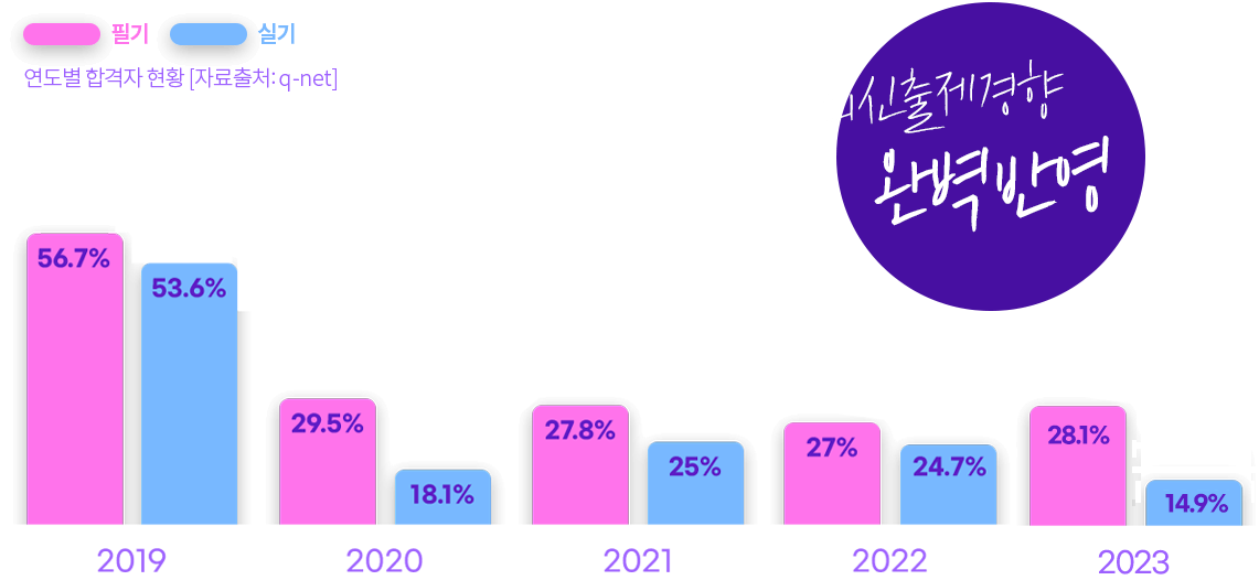 출제기준 변경으로 대폭 높아진 난이도! 필기/실기 합격률 절반 이상 하락
